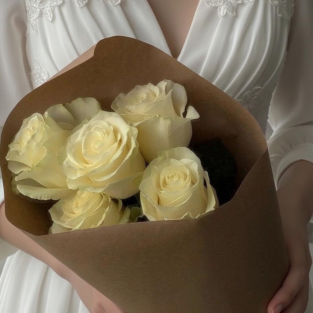 Flowers bouquet with 5 white roses