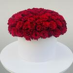 Эта изысканная композиция представляет собой потрясающую коллекцию из 101 ярко-красной розы, аккуратно упакованной и упакованной в стильную белую коробку. Добавьте нотку элегантности и романтики в любой праздник с этим великолепным центральным украшением. Вечная красота красных роз в сочетании с элегантной белой коробкой создаёт роскошный и гармоничный подарок, каждый цветок которого несёт в себе душевное послание. Избавьтесь от обыденности и выразите свои чувства уникально с помощью этого шикарного, изысканного дизайна.