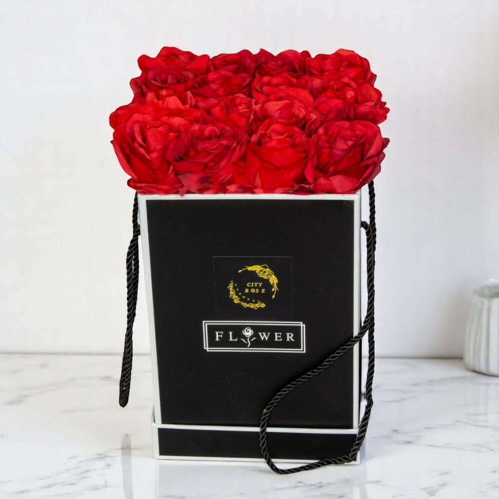 Композиция Flowers in a Box B — современный и роскошный цветочный подарок, в котором 39 ярко-красных роз аккуратно размещены в изящной черной вертикальной коробке. С выразительными черными ручками из шнура этот дизайн объединяет изысканность и романтику в компактной, стильной форме. Идеально подходит для дней рождения, годовщин, любовных посланий или элегантных сюрпризов, эта коробка с цветами передаёт мощное послание страсти с утончённой эстетикой. Инструкции по уходу: Для максимальной свежести аккуратно извлеките розы из коробки и подрежьте стебли под углом 45° острым ножом или секатором. Поместите цветы в чистую вазу с холодной водой, меняйте воду ежедневно и освежайте срезы стеблей при каждой смене воды. Храните композицию в прохладном месте, вдали от прямых солнечных лучей, источников тепла или кухонных зон. Прохладная температура поможет дольше сохранить цвет и жизнеспособность ваших роз.