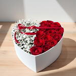 Представленный в элегантной белой коробке в форме сердца и украшенный красной сатиновой лентой, этот дизайн идеально подходит для Дня святого Валентина, годовщин, помолвок или значимых романтических сюрпризов.