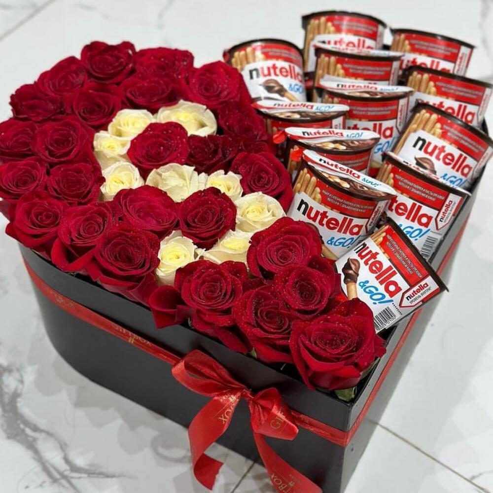 12 nutella go + 6 белых роз + 9 красных роз - 1 шт.