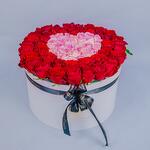 Розовые и красные розы в коробке