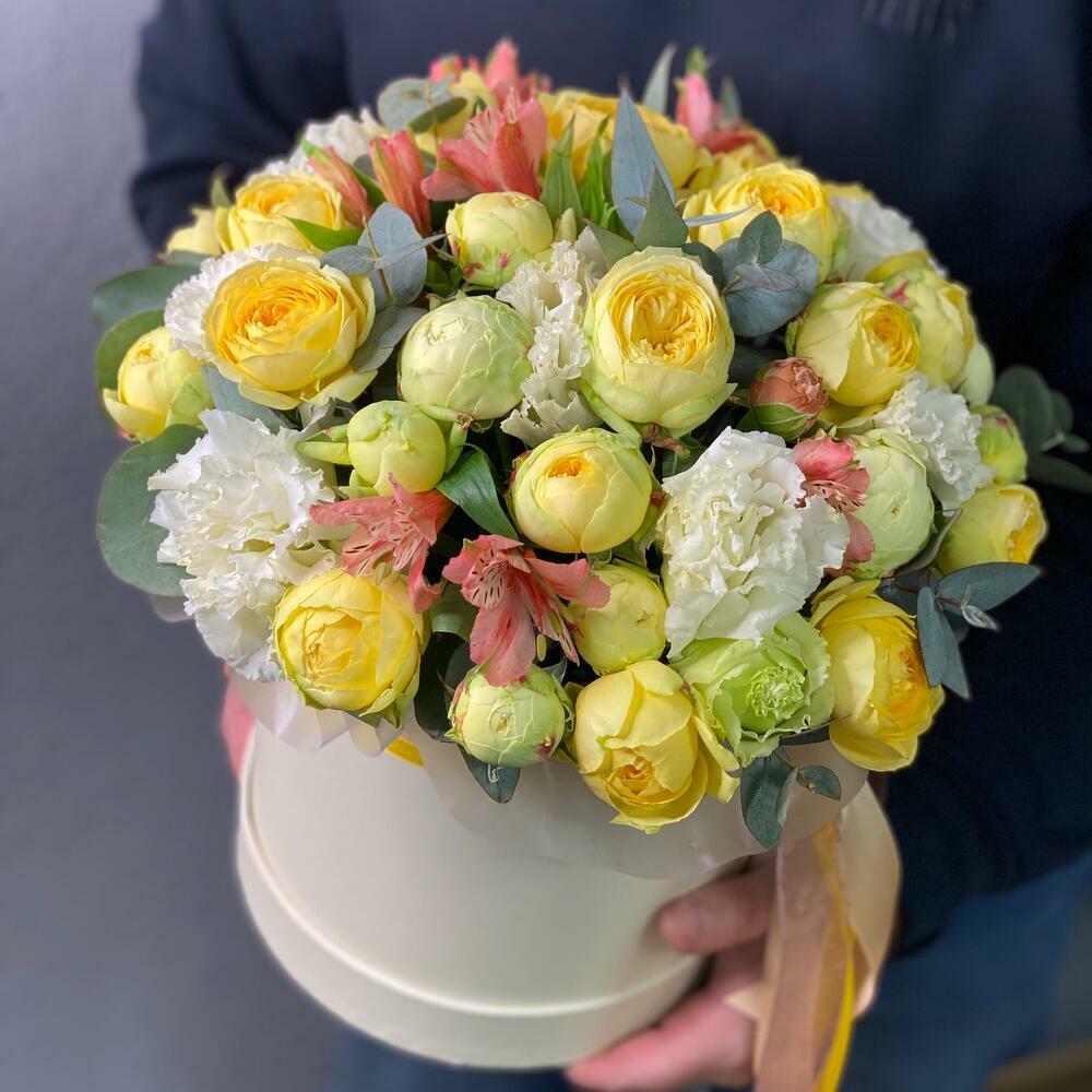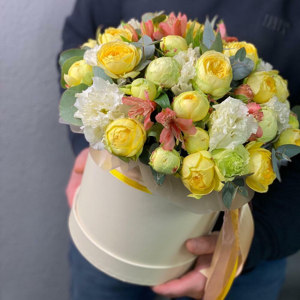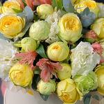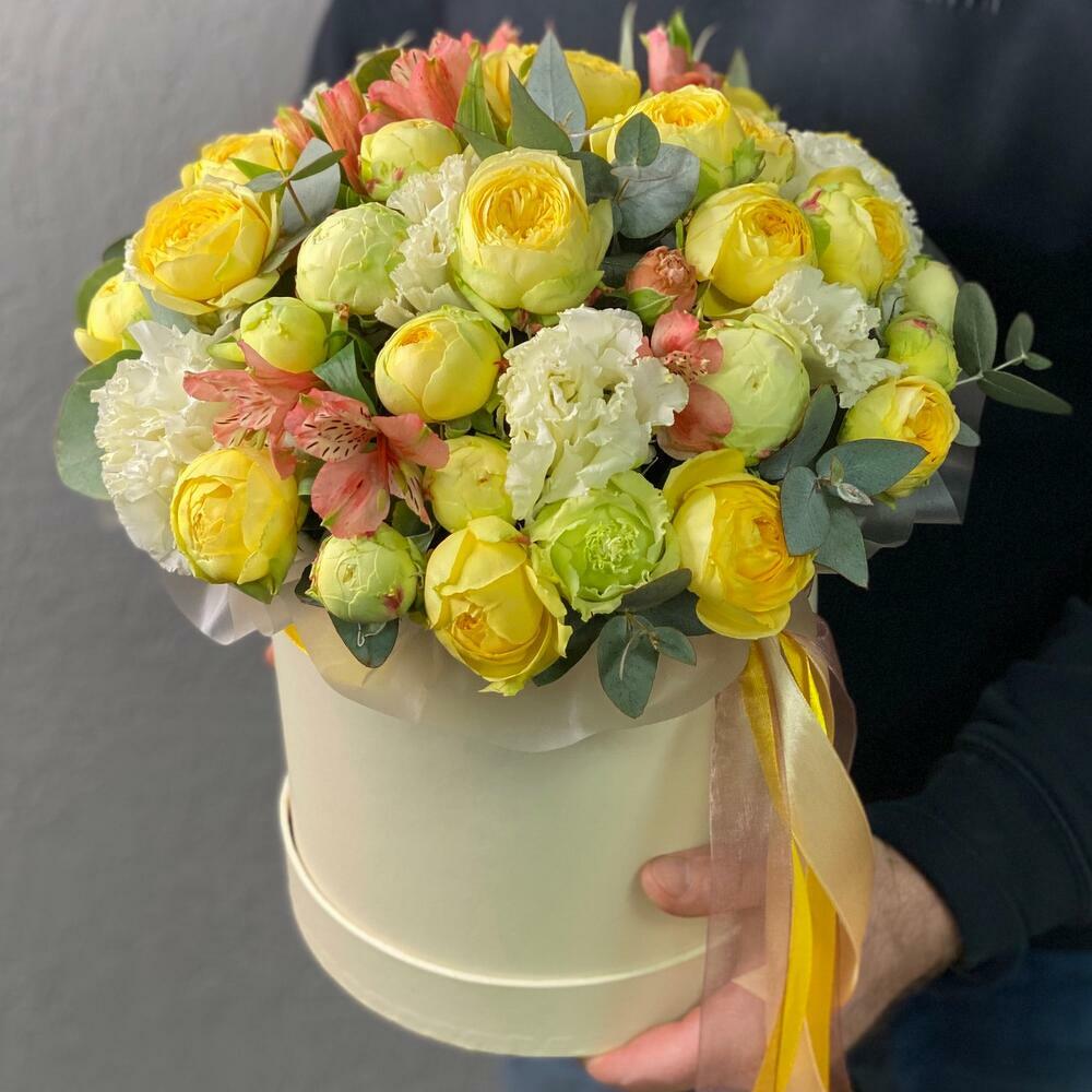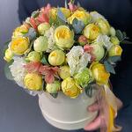 Порадуйте своих близких этой яркой композицией в тёплых тонах, дарящей им позитивные эмоции и настроение. Жёлтые розы — символ богатства, тепла и солнца. Шляпная коробка с розами — подходящий подарок для самых близких, коллег, друзей или вашего руководителя💛
