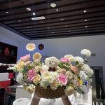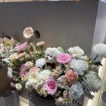 Teddy bear - 1 шт. rose - 4 шт. carnation - 4 шт. маленькая роза - 10 шт.
