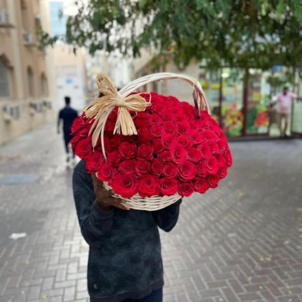 101 красная роза в корзине - 529