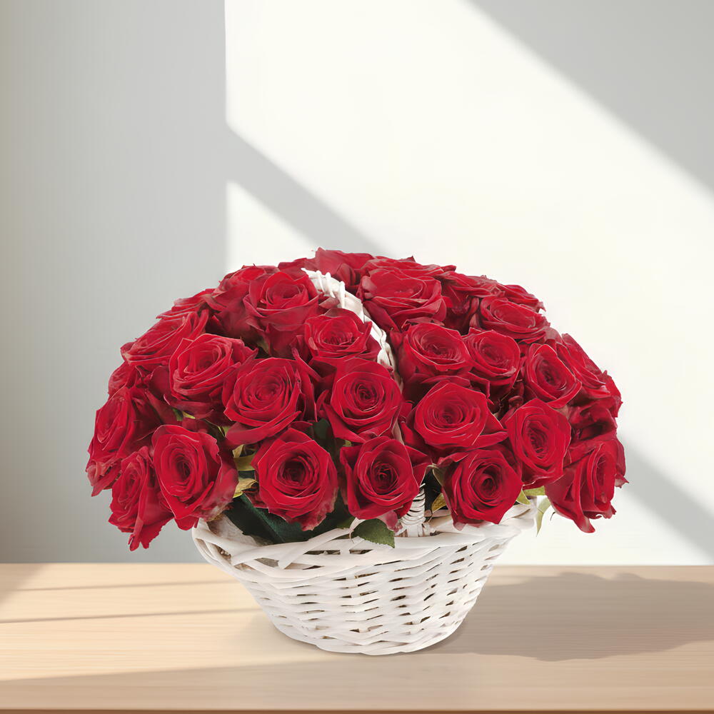 Красные цветы в корзине