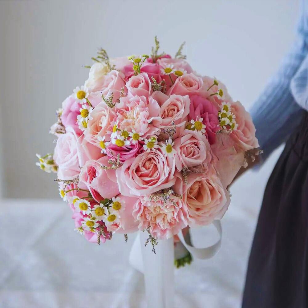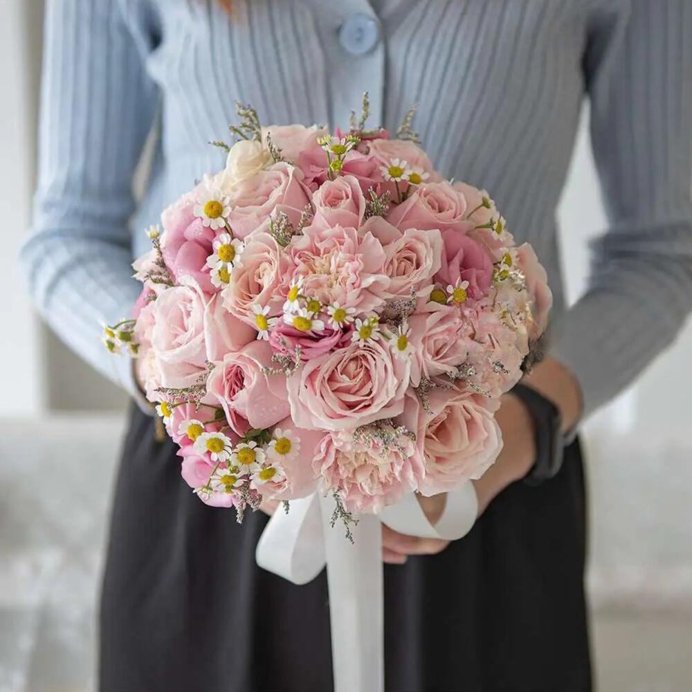 Pink rose - 20 шт. carnation - 10 шт. lavender statice - 10 шт. эригерон - 10 шт.