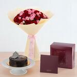 шоколадный торт - 500 гр. red roses - 30 шт. розовые спрей-розы - 20 шт.