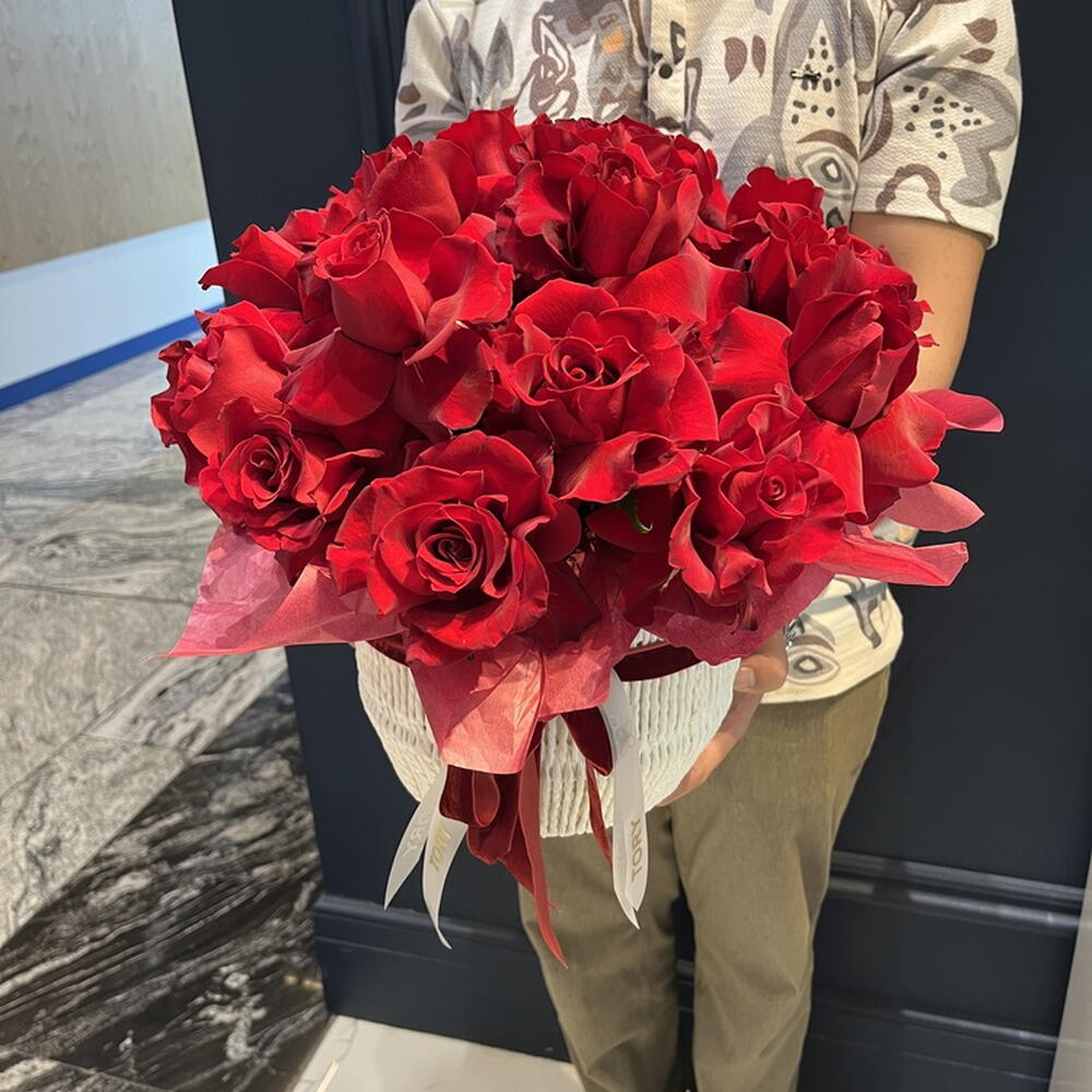 Composition: rose red - 27, box - 1 Sizes: WIDTH - 30CM; HEIGHT - 35CM; LENGTH - 35CM; (including packaging) Размер: 30 x 35 x 35 см