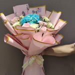 Fresh Breath: Букет из 6 розовых и 6 белых роз с 1 синей гортензией в красивой упаковке. Основные характеристики: Нежные розовые гвоздики: 20 тщательно отобранных розовых гвоздик, известных своим мягким оттенком и непреходящей красотой. Элегантная белая гортензия: 1 веточка белой гортензии добавляет букету изысканности и изящества. Прозрачная упаковка: Прозрачная упаковка, продуманно представляющая Miss Me, подчеркивает естественную красоту цветов. Идеально подходит для сентиментальных моментов: Идеально для выражения тоски, ностальгии и привязанности к любимому человеку. Гарантия свежести: Каждый цветок тщательно отобран, чтобы обеспечить максимальную свежесть и стойкость, создавая потрясающий букет, который прослужит долго. Почему стоит выбрать Fresh Breath? Нежное выражение: Сочетание роз и синей гортензии пробуждает чувства любви, тоски и воспоминаний, делая Miss Me нежным и трогательным подарком. Памятный жест: подарить «Свежее дыхание» — это трогательный способ дать понять, что вы скучаете по нему и цените его, оставляя неизгладимое впечатление. Универсальный подарок: «Свежее дыхание» подходит для разных случаев, от дней рождения до годовщин или просто для выражения чувств. Это универсальный выбор для трогательных моментов. Удобная доставка: благодаря прозрачной упаковке «Свежее дыхание» можно легко доставить близкому человеку, что гарантирует безупречное качество подарка.