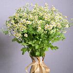 Озарьте любое пространство этим очаровательным букетом ромашек, оформленным в элегантной золотисто-белой керамической вазе. Свежие, жизнерадостные белые ромашки с жёлтыми серединками излучают простоту и радость, идеальны в подарок или для домашнего декора