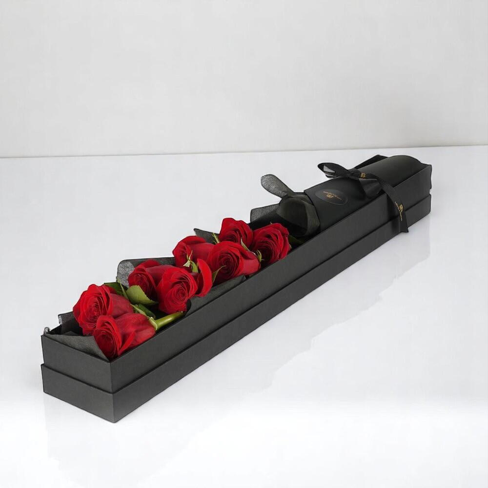 красная эквадорская роза, уложенная в прямоугольную коробку 80 см - 8 шт.