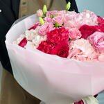 Ощутите пленительную энергию нашей фирменной розово-фуксиевой композиции. Этот дизайн, получивший название «Букет фуксии», представляет собой роскошное сочетание нежных, романтичных розовых и ярких, электризующих фуксиевых роз, излучающих страсть и радостную привязанность. Каждая деталь продумана для максимального эффекта: • Яркая гармония: потрясающий градиент нежно-розовых и насыщенных, притягивающих взгляд роз цвета фуксии наполняет этот букет, символизируя динамичную любовь, глубокое восхищение и чистое счастье. • Пышная текстура: обилие бархатистых роз разных размеров создает плотную, роскошную текстуру, визуально богатую и роскошную с любой стороны. • Нежная подача: вся композиция обернута в мягкую, полупрозрачную светло-розовую упаковку, изящно перевязанную элегантной атласной лентой, что гарантирует потрясающий, изысканный вид. Гарантированно захватывает дух. Что включено • Большой букет розовых и фуксиевых роз • Бесплатная подкормка для цветов (для сохранения свежести) • Персонализированная открытка (для выражения ваших сердечных пожеланий) Идеальный подарок для: Незабываемого романтического жеста, яркого сюрприза на день рождения, выражения глубокой благодарности или просто для того, чтобы привнести в чей-то дом непревзойденную яркость и роскошь.