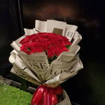 Роза фуксия в газетной обёртке