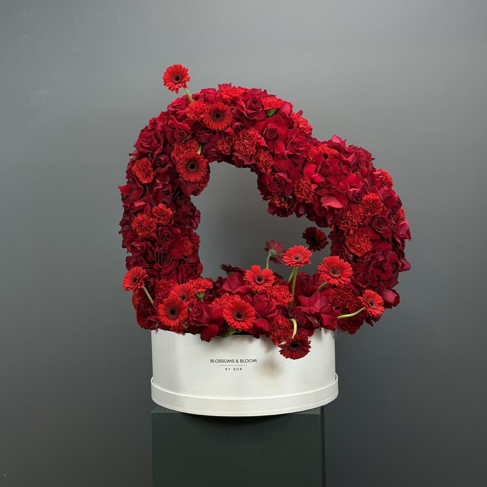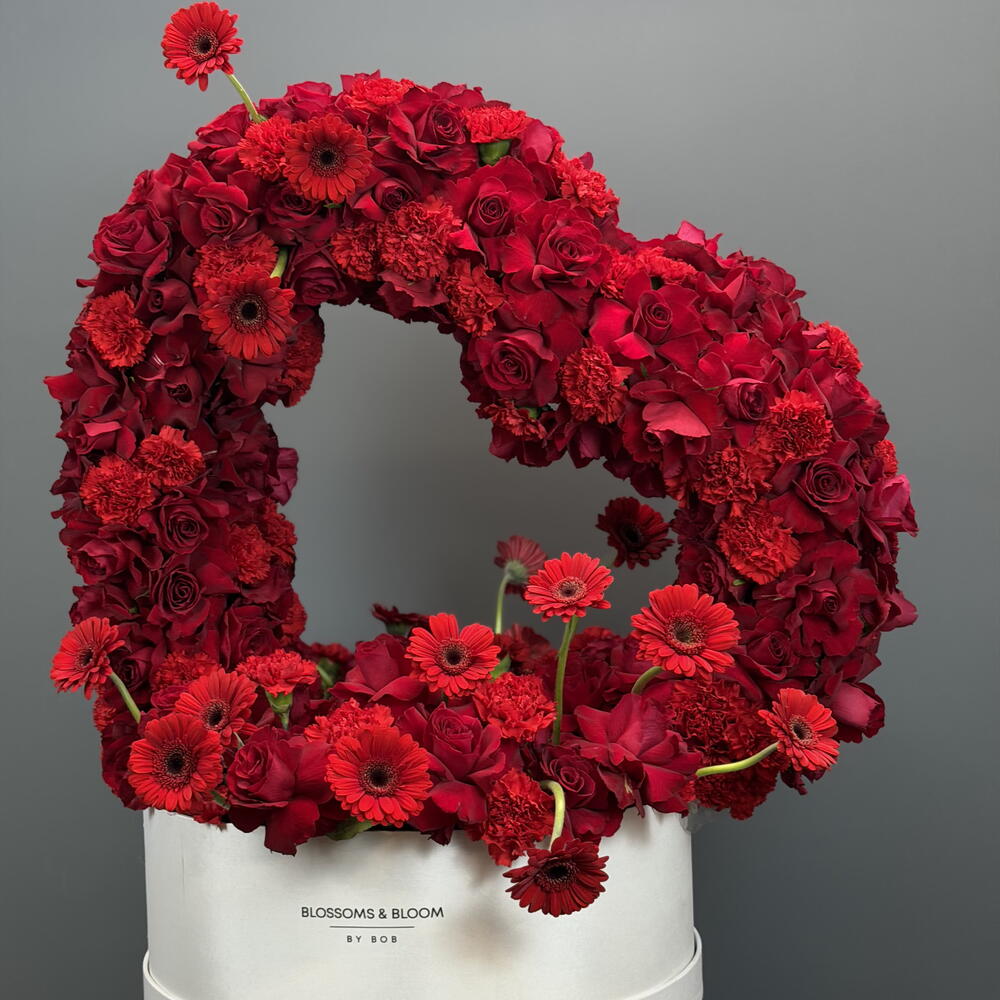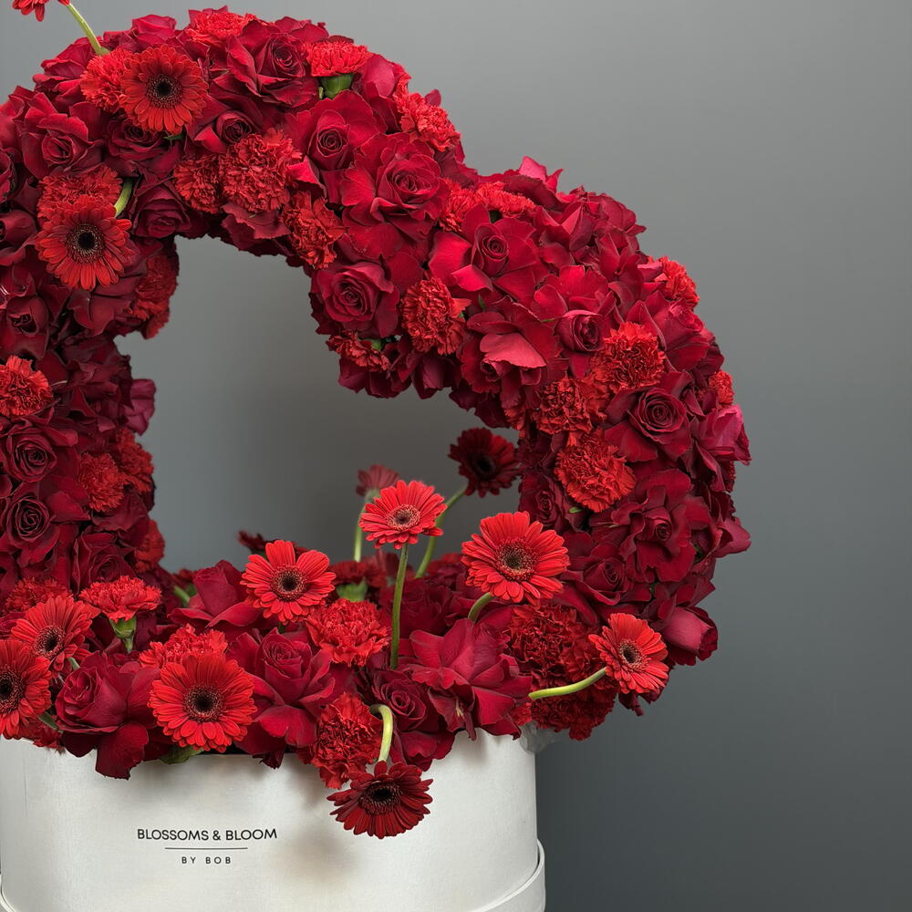 Red rose - 100 шт. Box - 1 шт. Gerbera - 20 шт. carnation - 50 шт.