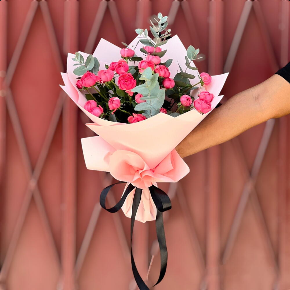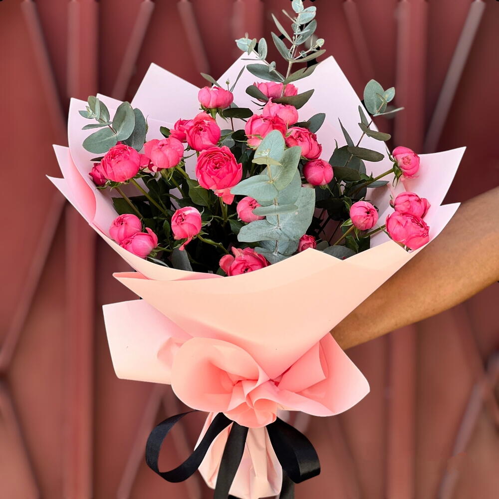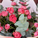 Насладитесь гармоничным сочетанием элегантности и природного очарования с нашим букетом кустовых роз малинового цвета и листьями эвкалипта. Пять стеблей ярких кустовых роз малинового оттенка излучают очарование и утонченность, дополняемые мягкими серебристо-зелёными тонами пяти веток эвкалипта. Эта композиция завораживает своим освежающим ароматом и изящной эстетикой, идеально подходит для любого случая — от камерных встреч до пышных торжеств. Окунитесь в красоту природы с этим изысканным букетом, который непременно очарует и вдохновит.