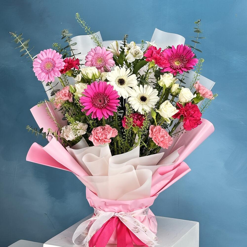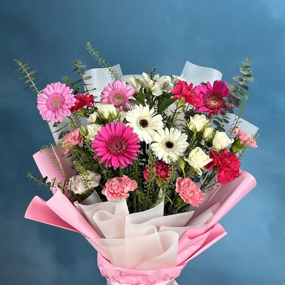 Alstroemeria - 1 шт. Gerbera - 6 шт. carnation - 8 шт. маленькая роза - 3 шт. липидиум - 3 шт.