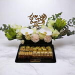 Подарите своим близким уют, тепло и элегантность с нашей акриловой коробочкой «Исцеляющие пожелания» – продуманным подарком, призванным согреть душу и сделать день ярче. Эта изысканная композиция сочетает в себе нежные цветы и изысканный бельгийский шоколад, красиво оформленные в премиальной акриловой коробке с фирменной арабской каллиграфией «Выздоравливайте скорее». Нежные белые розы и орхидеи навевают умиротворение и безмятежность, а эвкалипт и африканские цветы добавляют текстуру и свежий аромат. Под цветочным куполом скрывается роскошный набор из 750 г бельгийского шоколада в золотой обертке, дарящего ощущение сладости и заботы. Этот подарок идеально подходит для подарков по случаю выздоровления, визита в больницу или для того, чтобы подарить позитив нуждающемуся в поддержке. Он воплощает элегантность и искренние пожелания. Рекомендации по уходу: Хранить в прохладном, затененном месте, вдали от прямых солнечных лучей. Для сохранения свежести цветы можно слегка опрыскивать. Шоколад лучше всего хранить при комнатной температуре в сухом месте. Эта элегантная коробка станет украшением интерьера даже после того, как вы его съедите.