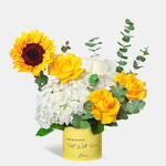 Яркие подсолнухи и весёлые жёлтые розы воплощают радость, тепло и воодушевляющий дух, который отцы приносят в нашу жизнь.