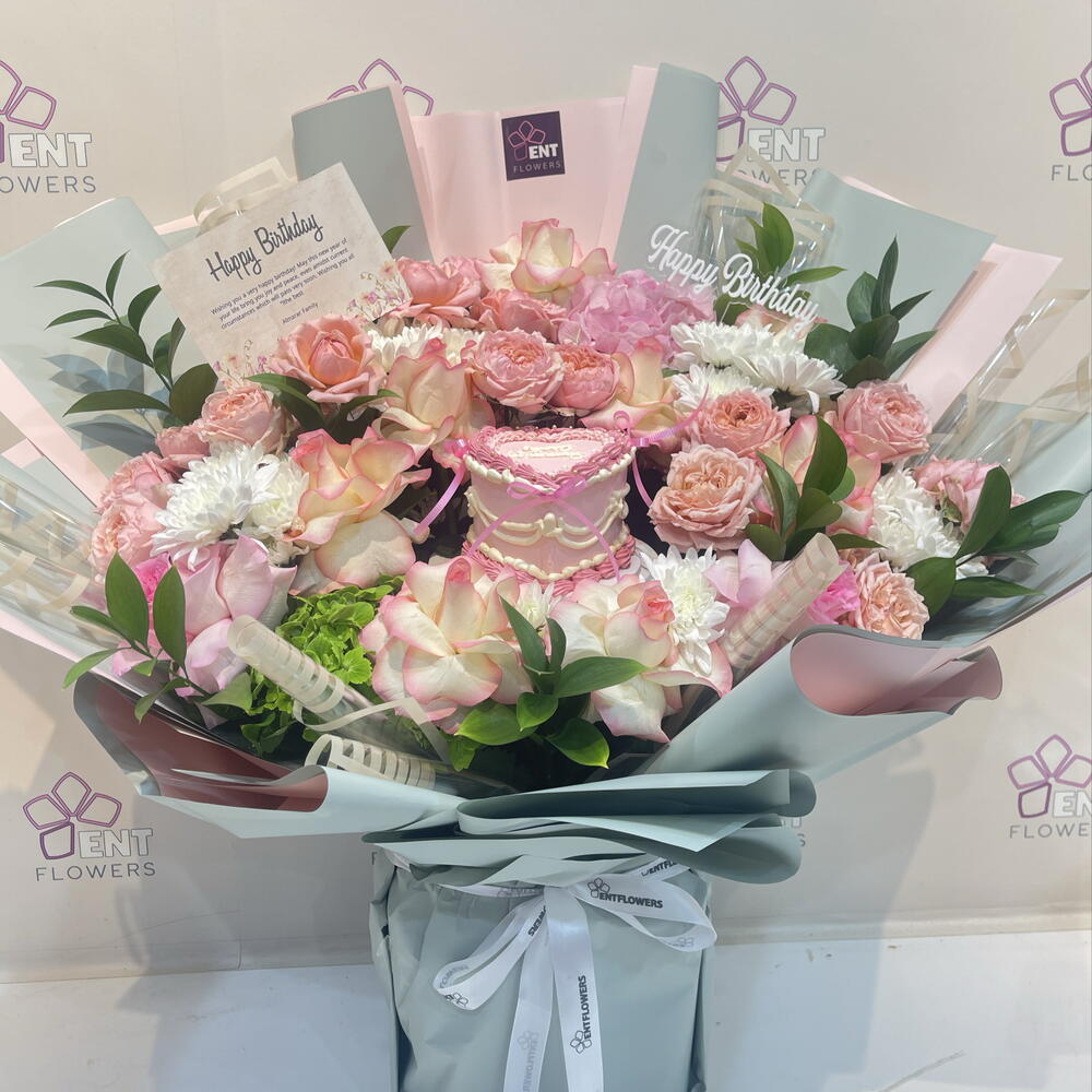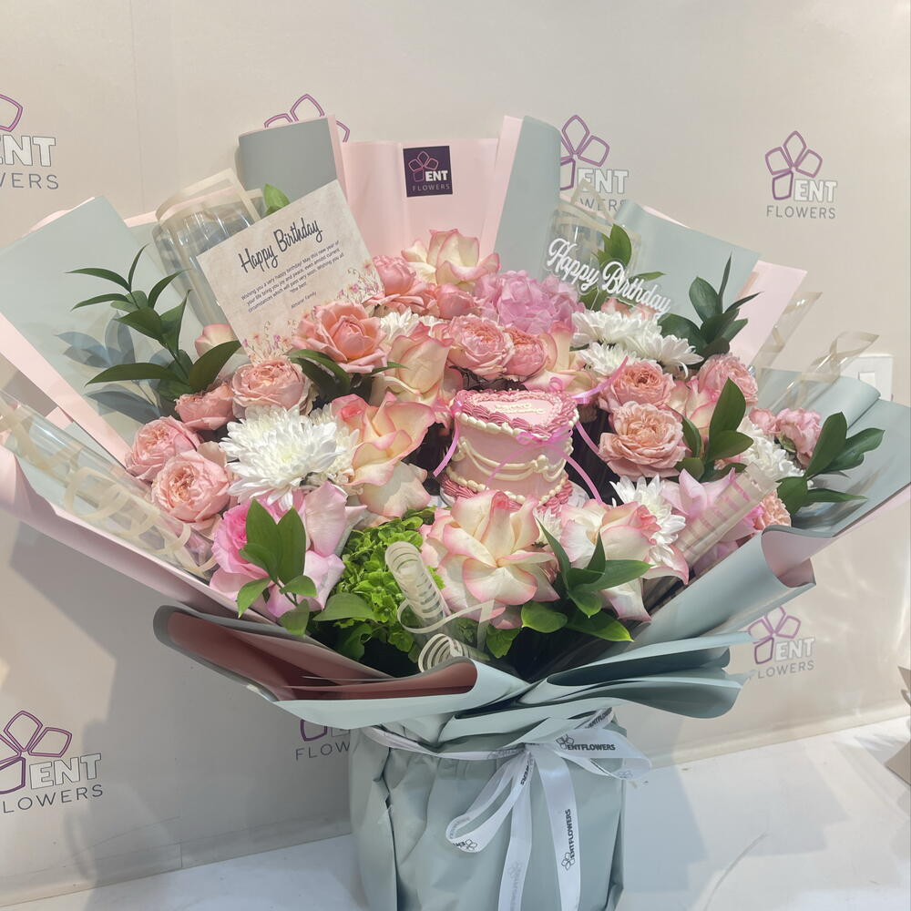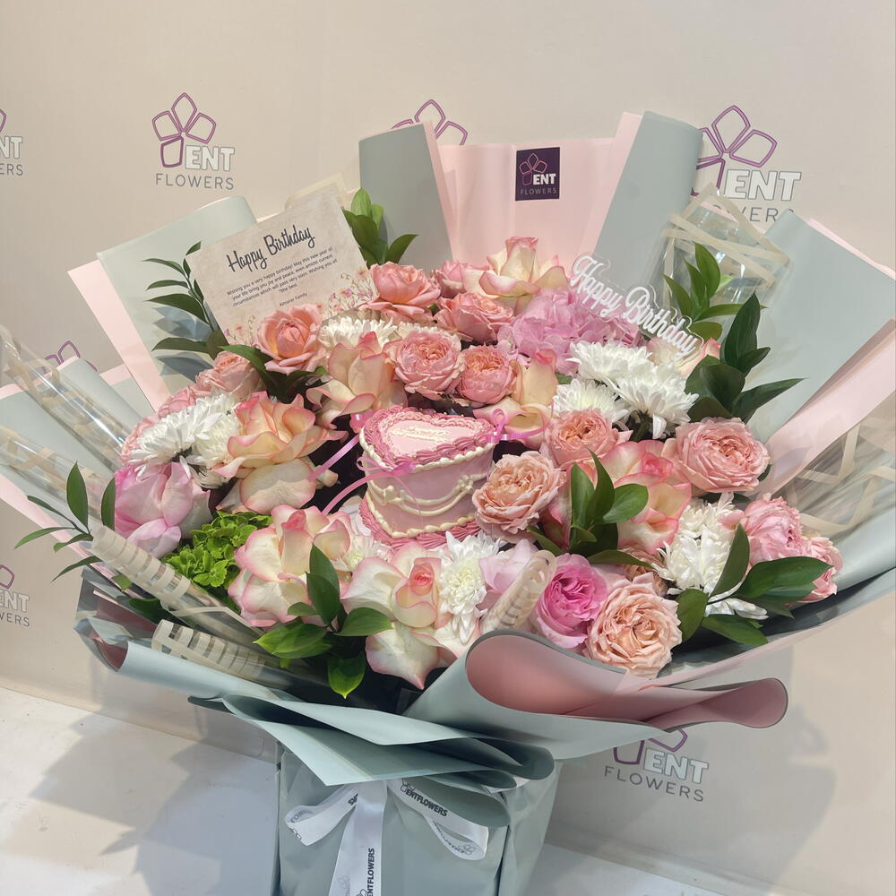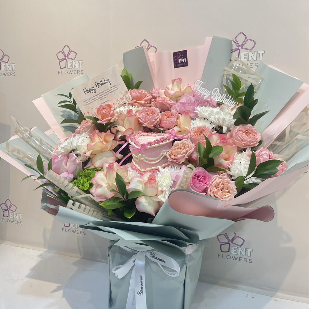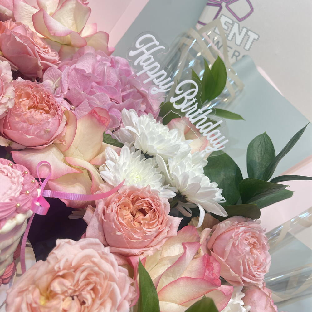 Pink rose - 11 шт. baby rose pink - 4 шт. гортензия - 2 шт. хризантема - 5 шт. сухари - 6 шт. мой торт - 1 шт.