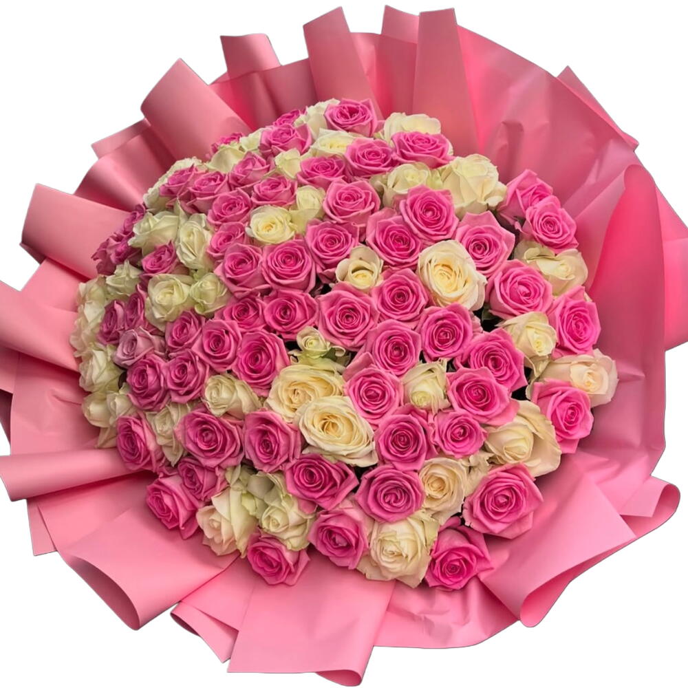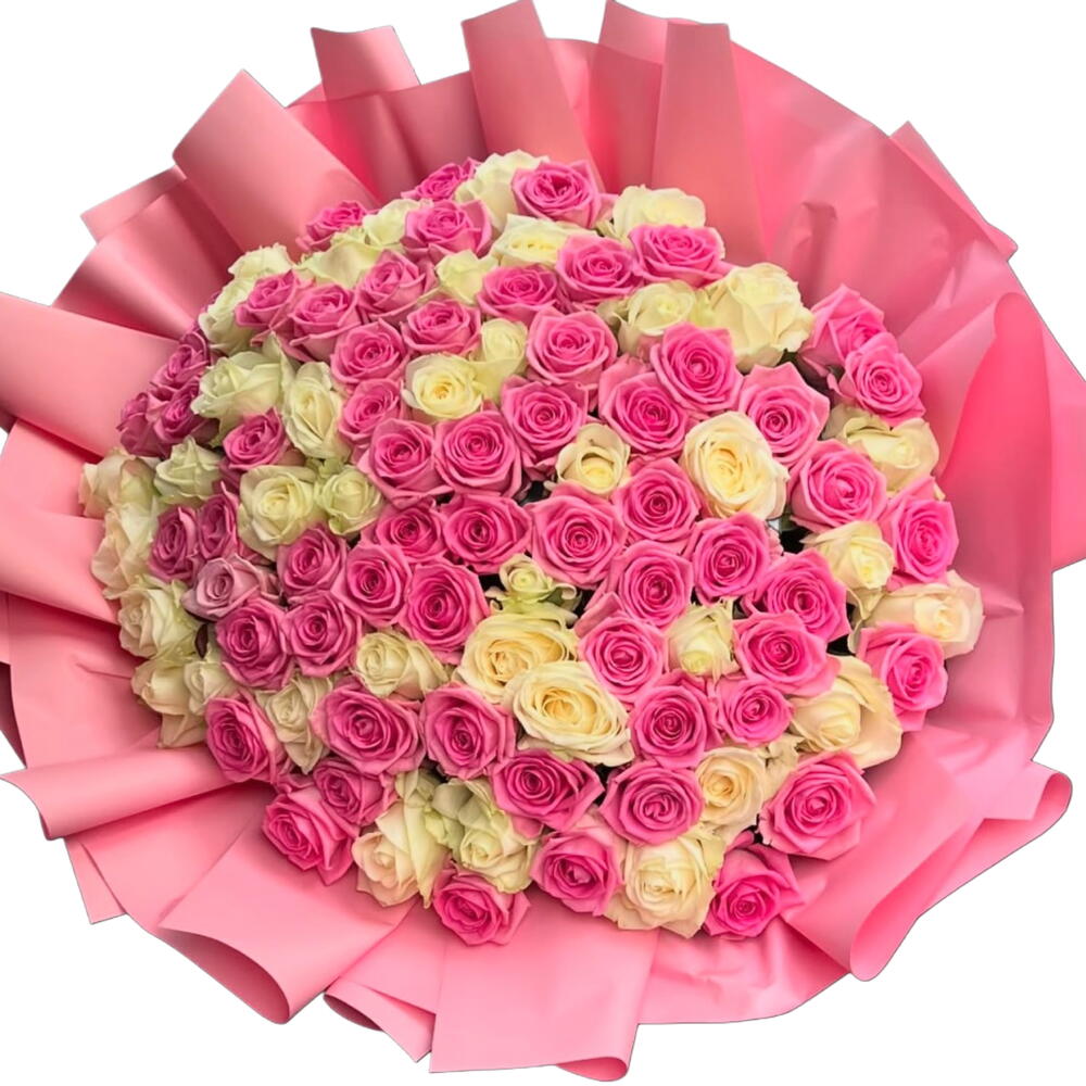 белые розы - 50 шт. розовые розы - 50 шт.