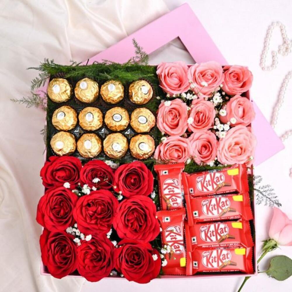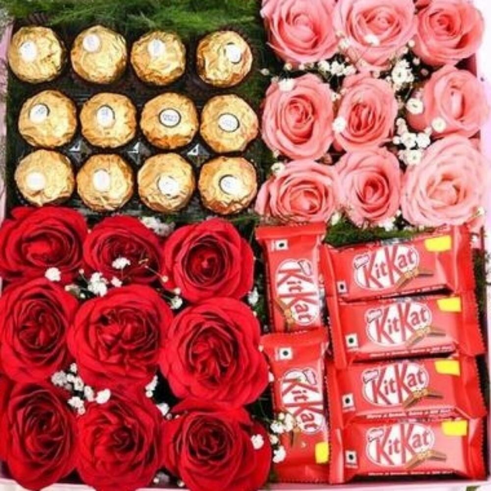 Сказочный набор-сюрприз на день рождения, состоящий из шоколада в сочетании с розовыми и красными оттенками. Это сочетание идеально подходит, чтобы добавить нотку сладости в чей-то особенный день. ✨ Элегантный. Нежный. Продуманный. Шоколад + 💐 Цветы = Чистое блаженство в день рождения! Свяжитесь с нами, чтобы создать свой собственный подарочный набор.