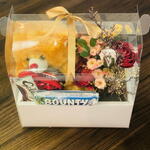 плюшевый медведь 20 см - 1 шт. artificial flowers - 5 шт. сникерс 45 г - 1 шт. bounty 50 грамм - 1 шт. galaxy 30 грамм - 1 шт.