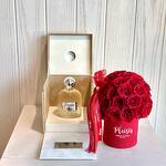 духи фрезия 100 мл - 1 шт. свежие миниатюрные красные розы - 25 шт.