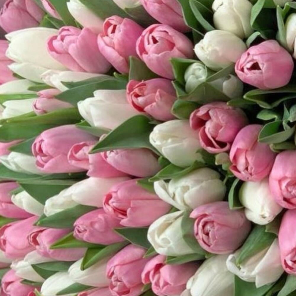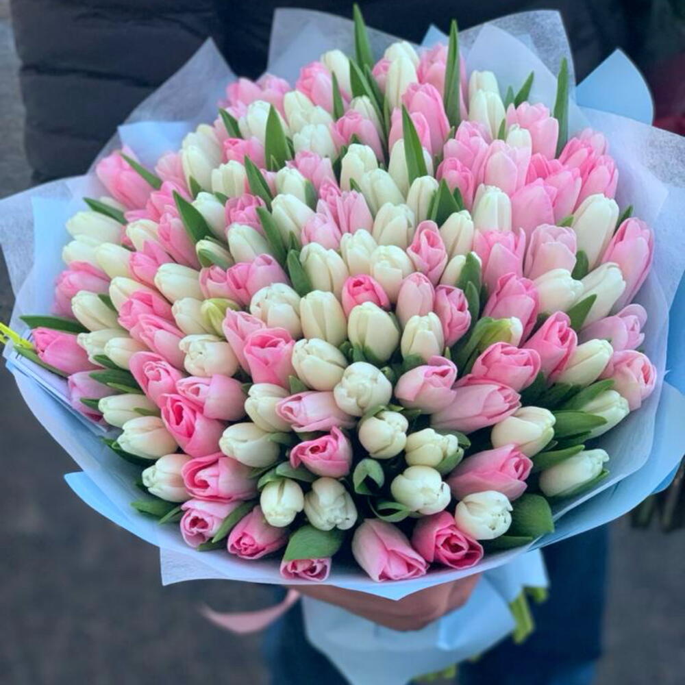white tulips - 50 шт. нежно-розовые тюльпаны - 51 шт.