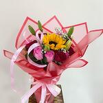 Ощутите сияющий праздник красок в этом изысканном букете из нашей специальной серии флористов. Эта чарующая цветочная композиция включает один великолепно яркий подсолнух, окружённый четырьмя ярко-красными розами и четырьмя нежно-розовыми розами. Букет деликатно дополнен двумя веточками воздушной гипсофилы и увенчан пятью чисто-белыми лилиями. Каждый стебель был отобран вручную нашими экспертами-флористами, чтобы создать идеальный баланс цветов, в результате — потрясающий подарок, подходящий для любого случая.
