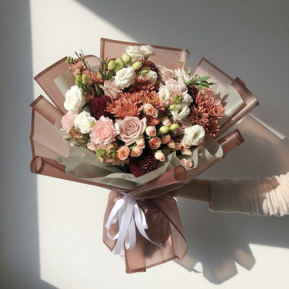 Погрузитесь в изысканную красоту специальной коллекции наших флористов, включающей искусно созданную композицию из 10 сияющих роз, 6 ярких хризантем и 6 классических гвоздик. Десять нежных восковых цветов и четыре элегантные белые маттиолы добавят нотку изысканности, а шесть цветов, напоминающих пинг-понг, наполнят атмосферу радости. Превратите любой момент в особое событие с этим потрясающим цветочным ансамблем.