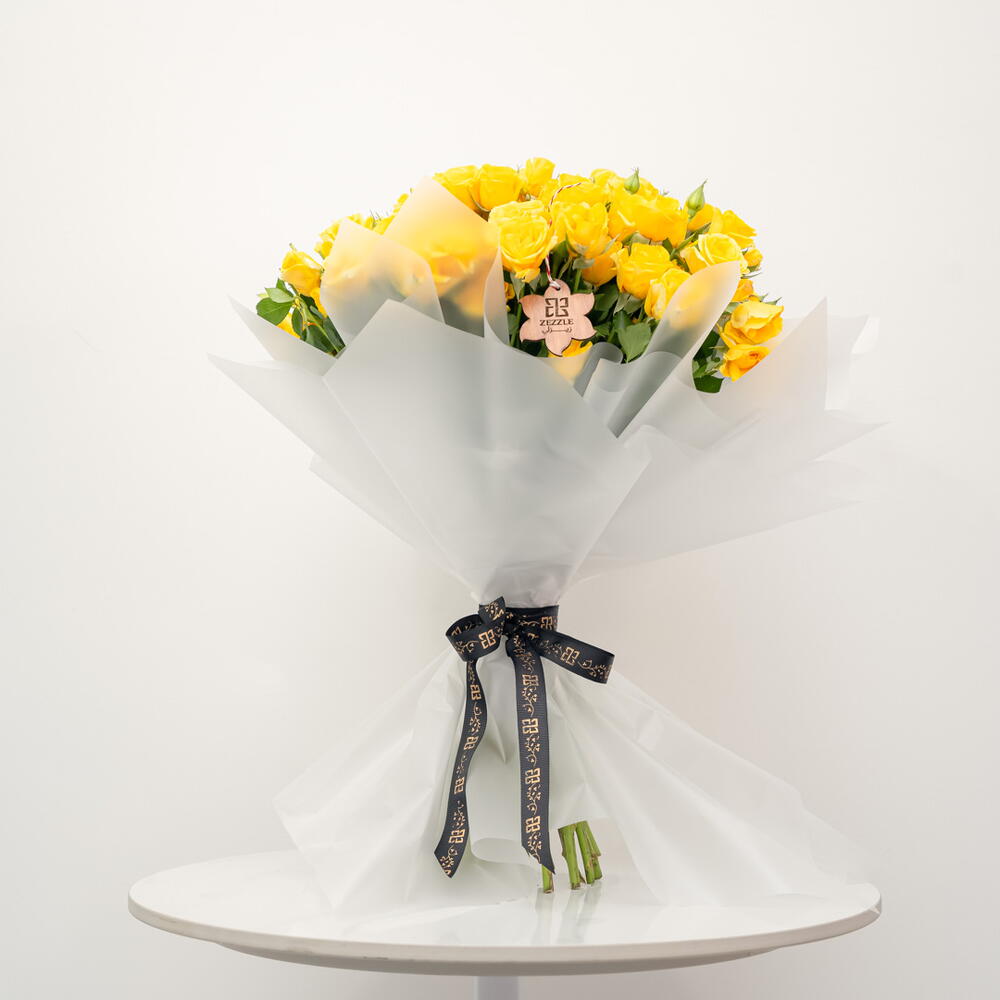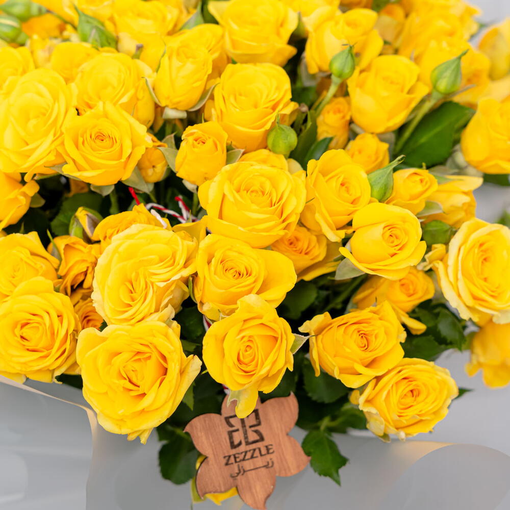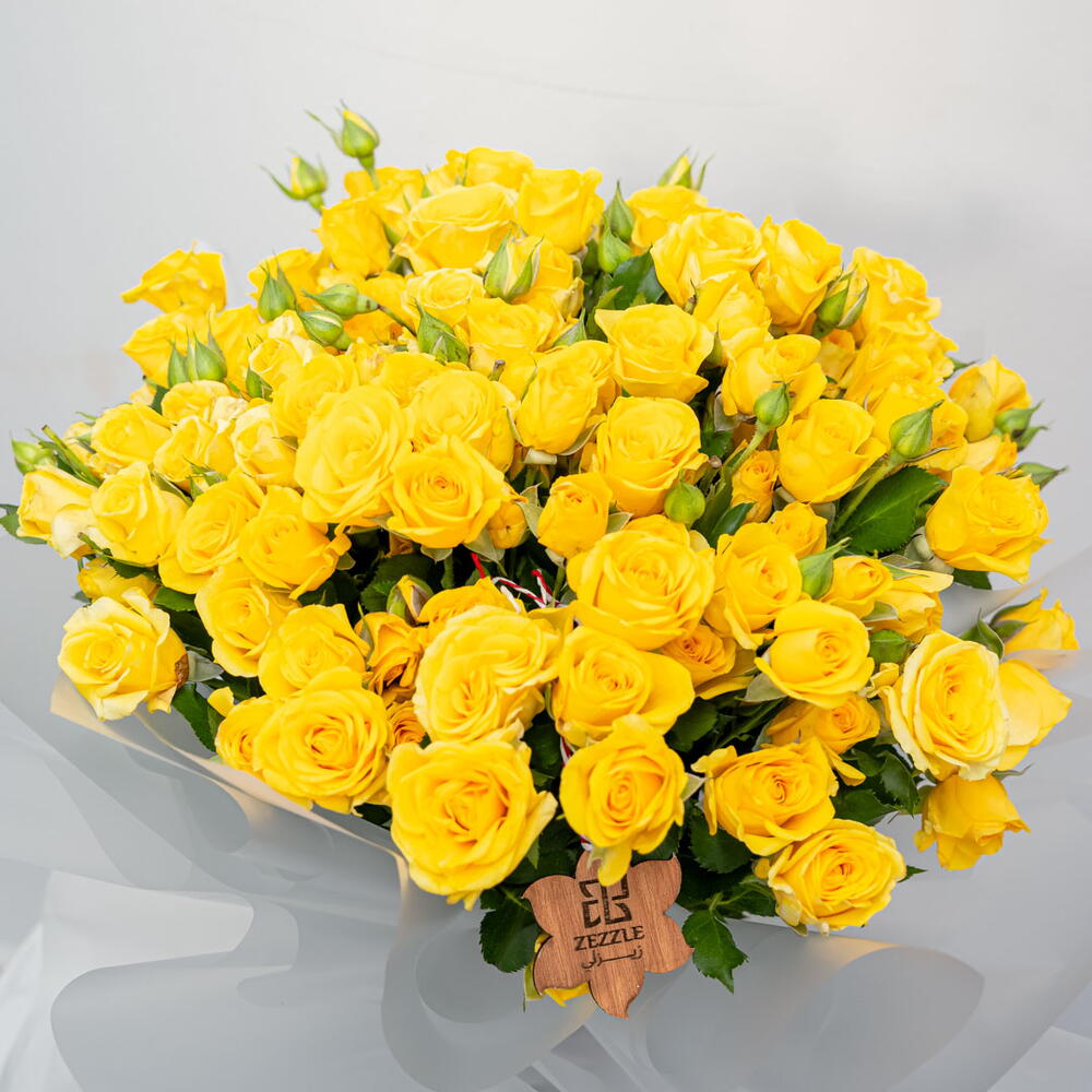 Сияющий и солнечный букет Golden Sun включает 50 ярких жёлтых роз. Эта радостная композиция идеально подходит для выражения радости, дружбы или просто чтобы скрасить чей-то день. Солнечный оттенок роз создаёт потрясающее и незабываемое зрелище.