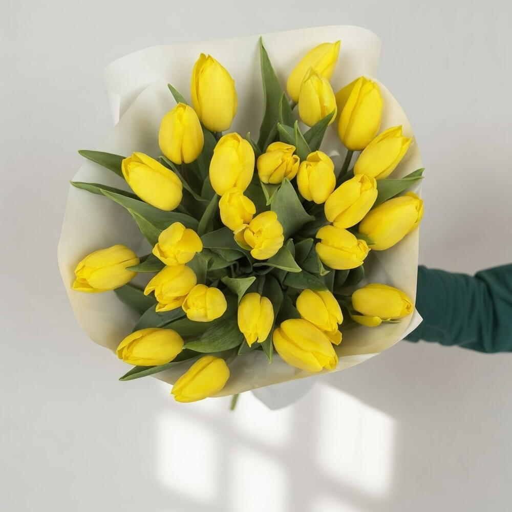 Golden Sunshine — это сияющий моно-букет, состоящий из 25 ярких жёлтых тюльпанов, собранных в плотную и гармоничную форму. Лучистый жёлтый оттенок символизирует счастье, оптимизм и тёплую, позитивную энергию. Эта жизнерадостная композиция передаёт дух весны и мгновенно поднимает настроение своим солнечным видом. Чистый, округлый дизайн подчёркивает природную элегантность тюльпанов, сохраняя при этом свежий и современный облик. Идеально подходит для дней рождения, Дня матери, вручения дипломов, юбилеев, семейных праздников или как продуманный сюрприз без повода. Прекрасный выбор для партнёра, мамы, друга, дочери, учителя или коллеги. Яркий, воодушевляющий и полный света — букет, созданный, чтобы дарить радость и вызывать долгие улыбки.