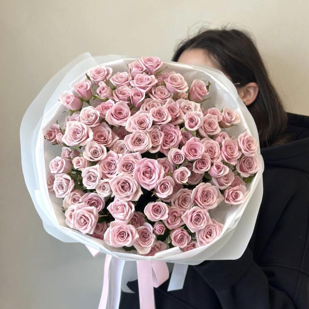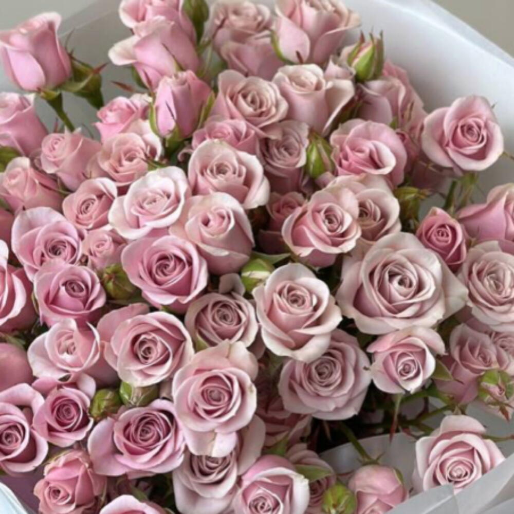 Букет из 49 веточных роз нежно-розового цвета — обаятельная и изящная композиция, излучающая тонкость и грацию. Веточные розы с нежно-розовыми лепестками придают свежесть и романтичную атмосферу любой обстановке, делая этот букет идеальным выбором для разных случаев, от дней рождения до признаний в любви.
