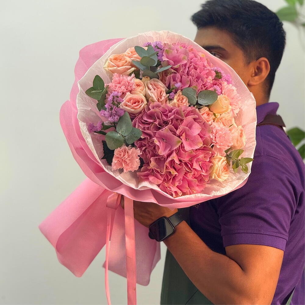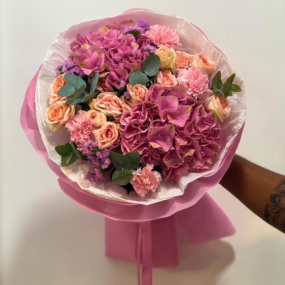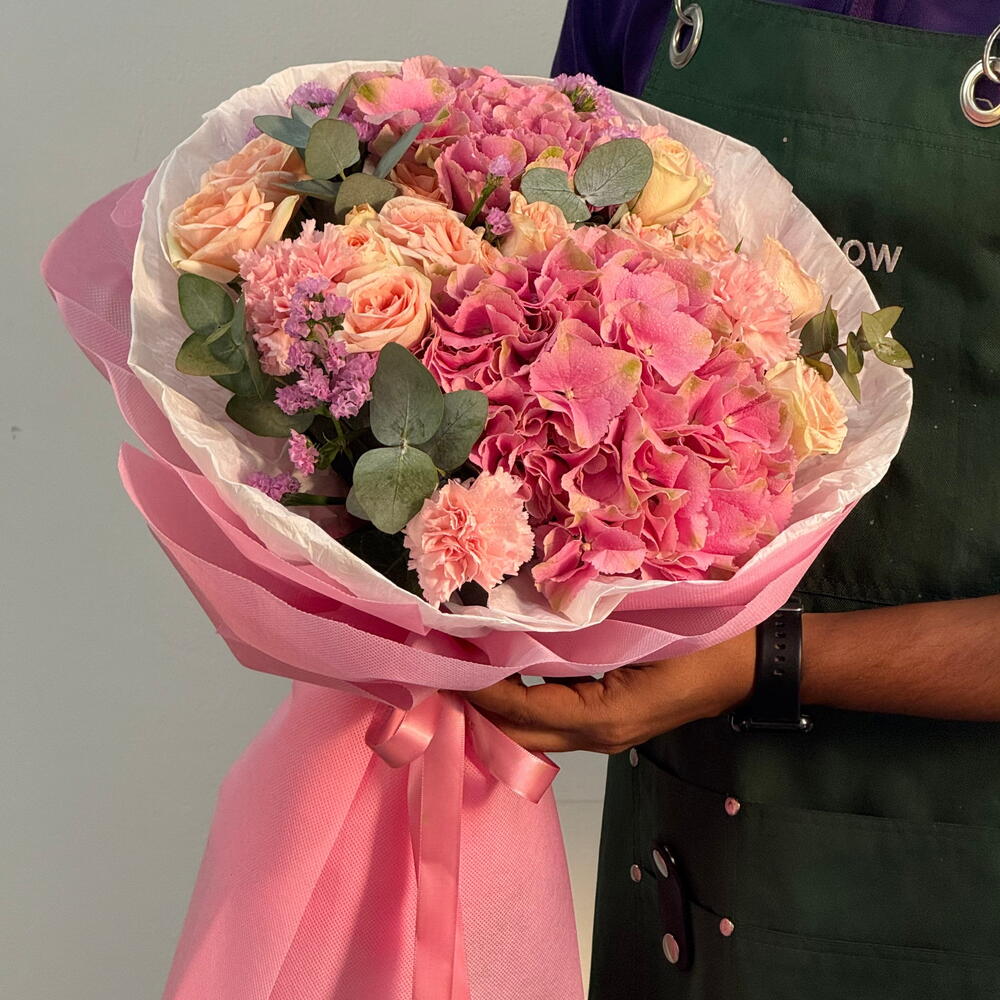 Роскошный смешанный букет с нежно-розовыми розами и премиальной гортензией, оформленный до совершенства для элегантного подарка. Свежий, современный и идеально сбалансированный—идеален для дней рождения, годовщин, сюрпризов в знак благодарности или любого особого момента в Дубае. Подарите чистую элегантность—закажите RC-M334 сейчас и сделайте каждый момент незабываемым с этим премиальным смешанным букетом.