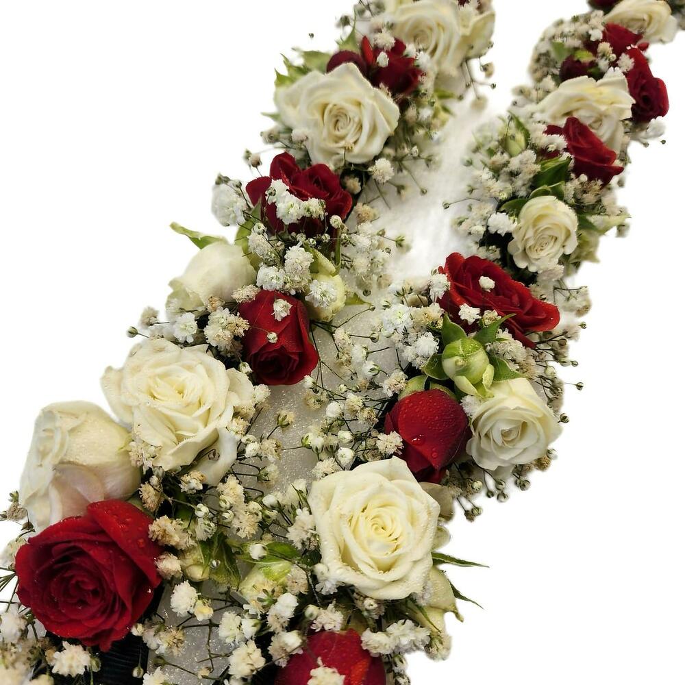 Сделайте выпускной незабываемым с этой роскошной гирляндой из свежих красных и белых роз. Искусно изготовленная вручную, свежесорванная гирлянда из роз обеспечит максимальную красоту и долговечность.