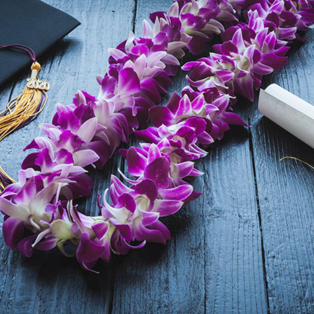 Выпускная гирлянда, сделанная из свежих орхидей.