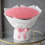 pink roses - 101 шт. матовая белая флористическая упаковочная бумага - 6 шт. сатиновая лента (розовая) - 1 шт.