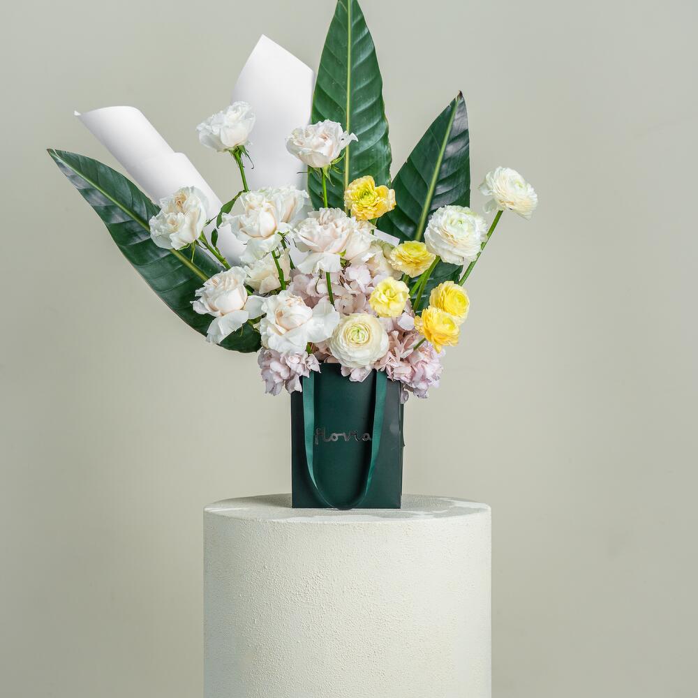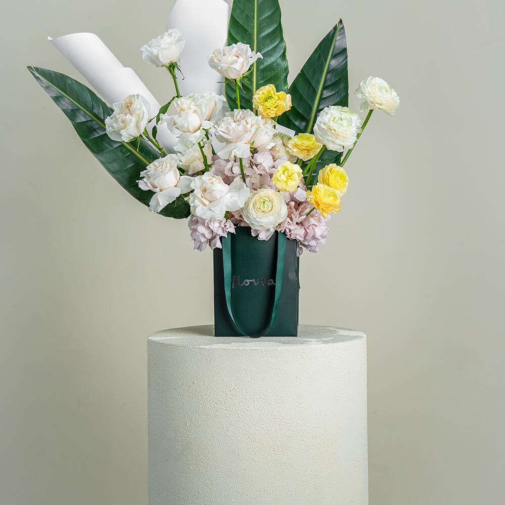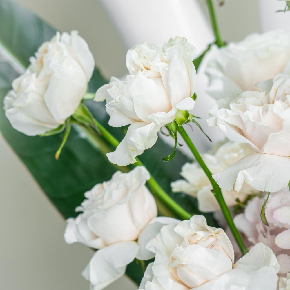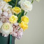 Hydrangea - 1 шт. white roses - 9 шт. цветы ранункулюсов - 4 шт. маленький ранункулюс - 5 шт.