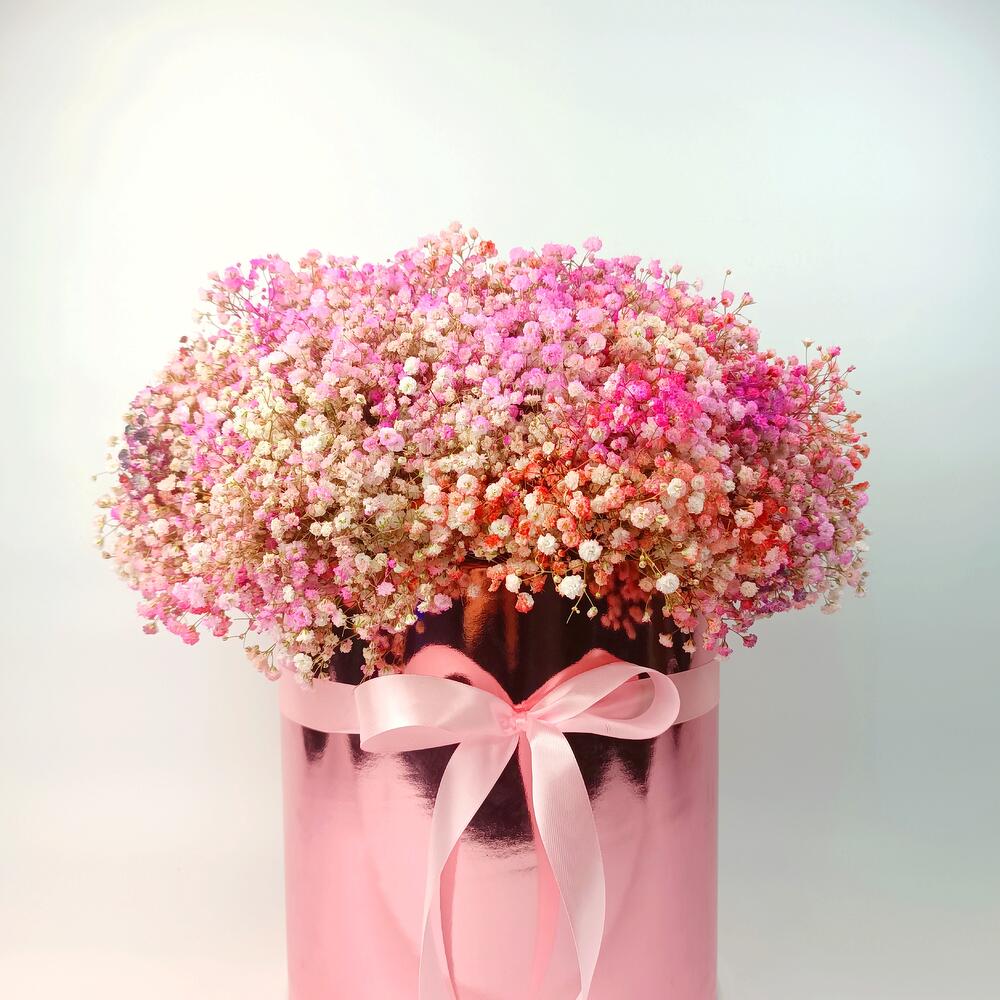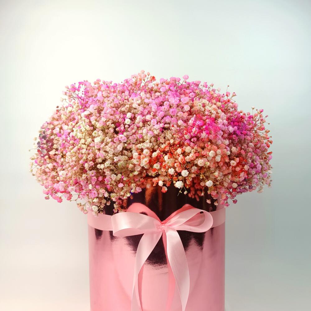 Роскошная цветочная коробка с розовой гипсофилой