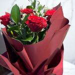 Red rose - 6 шт. Limonium - 2 шт. листья рускуса - 3 шт.