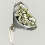 зелёные листья - 2 шт. стебель белой кустовой розы - 1 шт. стебель белого лизиантуса - 10 шт.