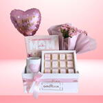 Make her day truly unforgettable with our Happy Mothers Day Gift Box, a thoughtfully curated collection of premium chocolates and luxurious surprises designed to celebrate the incredible woman she is. From the moment she opens the box, shell feel the love and care poured into every detail. What Makes It Special: 12 pcs of premium Belgian chocolates wrapped with Love messages and Happy Mothers Day themed box Cover Best Mom Ever porcelain mug Pink Kalanchoe plant beautifully gift wrapped Happy Mothers Day Balloon Ideal for moms, grandmothers, and mother figures