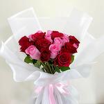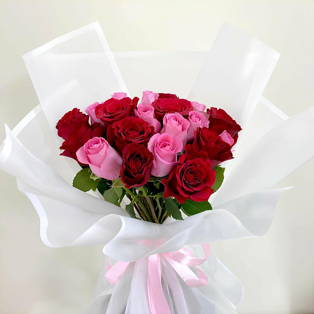 10 красных роз 10 розовых роз в белой упаковке ручной работы