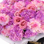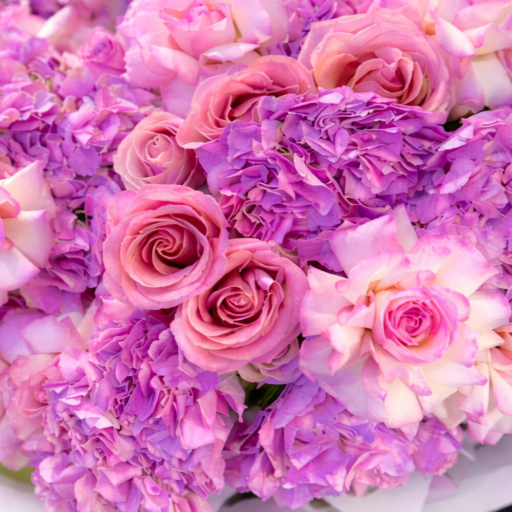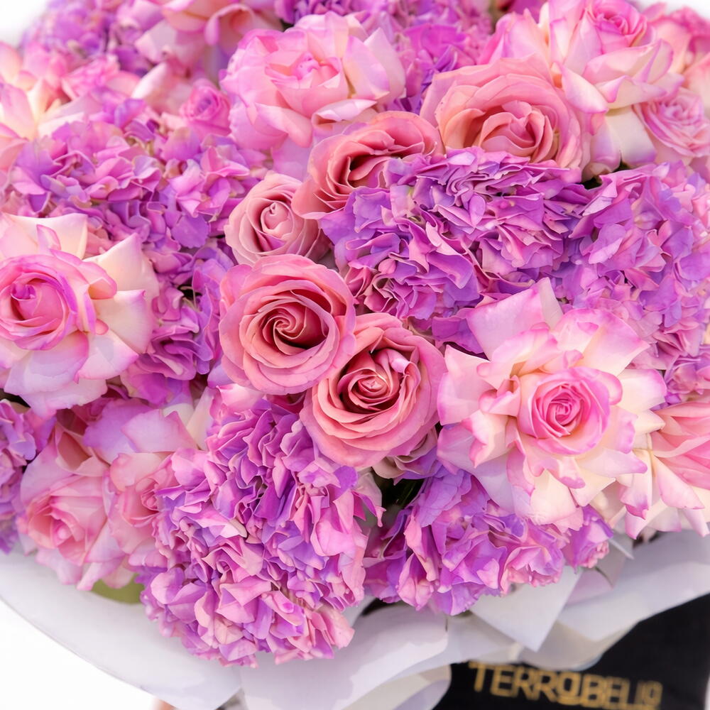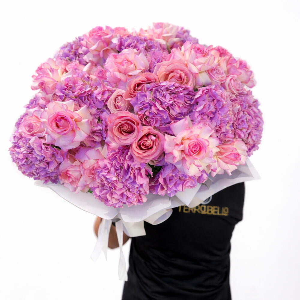 Harmony Cloud — это мечтательный букет, который сочетает нежные розовые розы с пышными лавандовыми гортензиями, создавая мягкое облако романтических пастельных тонов. Пышный, элегантный и прекрасно сбалансированный, этот букет передаёт ощущение нежной роскоши и вечной романтики. Обёрнутый в чистую белую упаковку для современного оформления, Harmony Cloud идеально подходит для дней рождения, праздников или трогательного сюрприза.