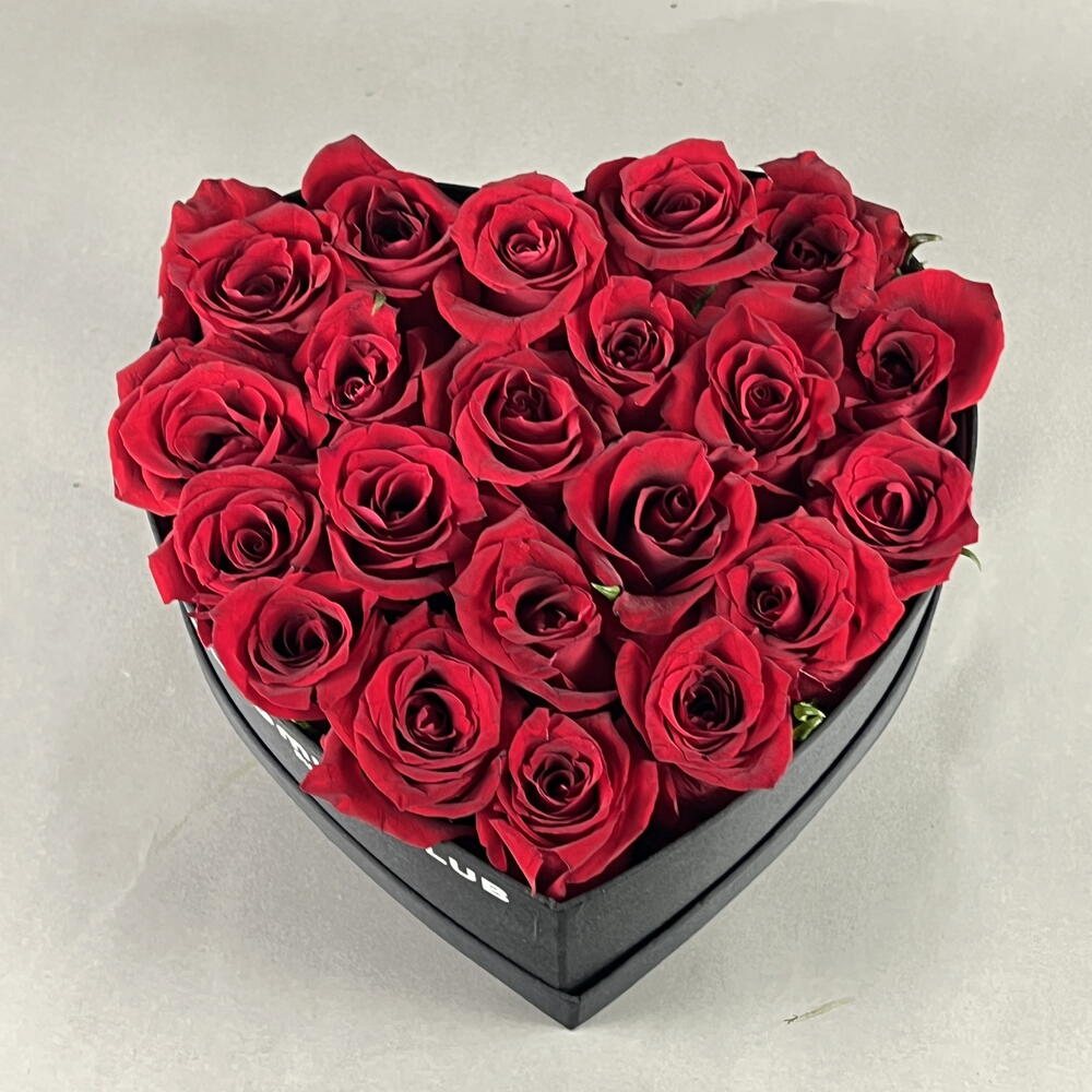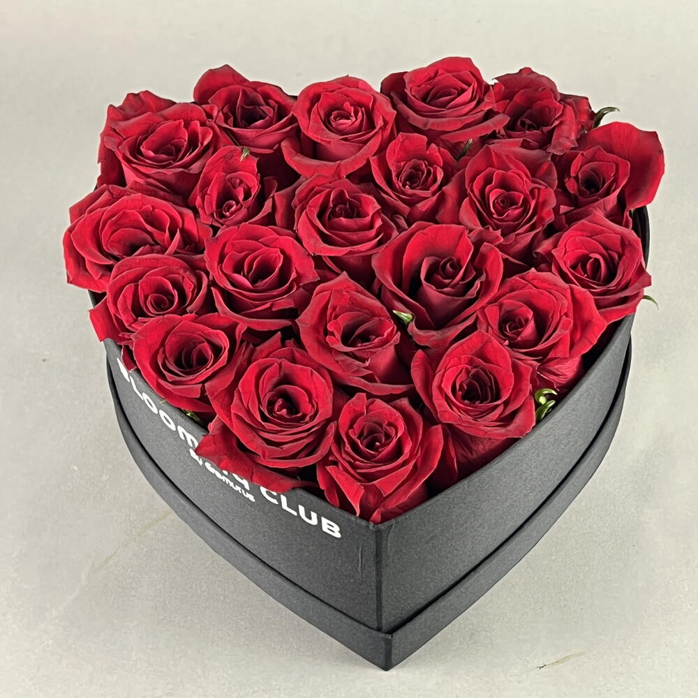 red roses - 21 шт. премиальная коробка в форме сердца - 1 шт.