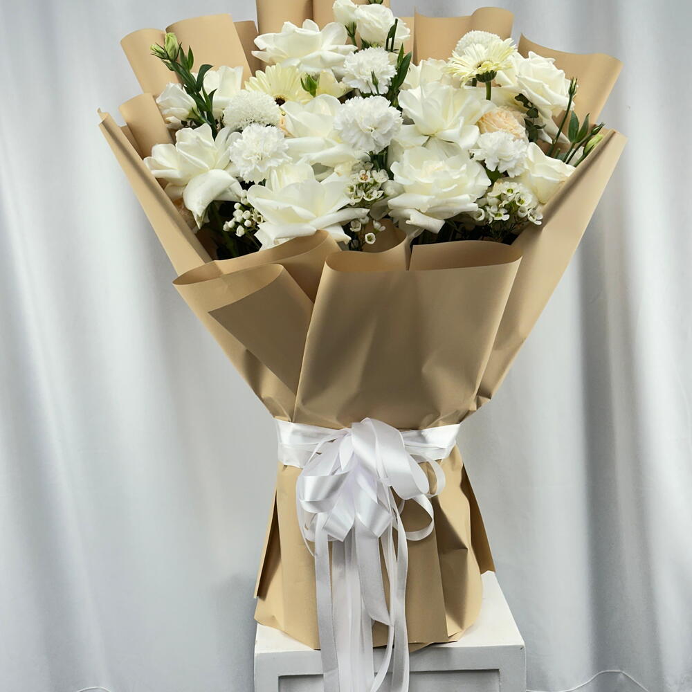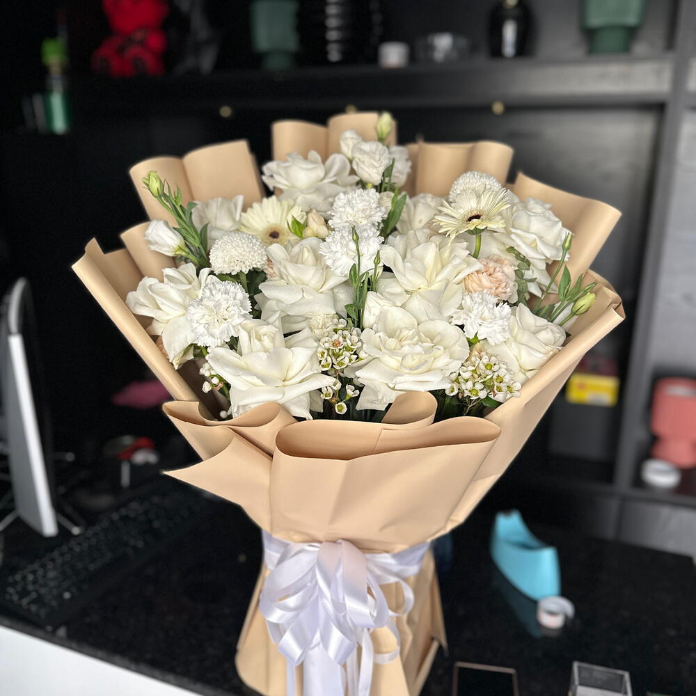 Насладитесь безупречной красотой наших специальных предложений флористов. Этот изысканный букет состоит из 10 чисто белых роз, каждая из которых отобрана вручную по цвету и размеру. Прямо из сада, эти цветы добавляют нотку элегантности и утончённости. Их вечная красота озарит любую комнату, а нежный аромат оставит неизгладимое впечатление. Идеально подходит для любого случая или просто так. Цветы закреплены в стильной упаковке для максимальной свежести и эстетической привлекательности. Побалуйте себя или сделайте чей‑то день немного светлее этим великолепным букетом.