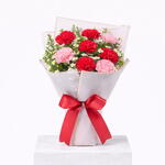 red carnation - 5 шт. pink carnation - 3 шт. camomile - 2 шт.