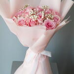 Pink rose - 20 шт. Gypsophila - 10 шт.