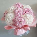 белая гортензия - 5 шт. розовая гортензия - 5 шт. красивая обёрточная бумага в букете - 5 шт.